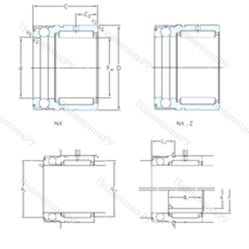 Малогабаритная конструкция Подшипник комбинированный NX10Z представляет собой совмещение игольчатого радиального роликоподшипника и упорного подшипникового тела качения (роликового или шарикового). В качестве упорной части может идти сепаратор, в то время как иные варианты поставляются без данного элемента. Также существуют фланцевые и бесфланцевые разновидности со стандартным или удлиненным тугим кольцом.