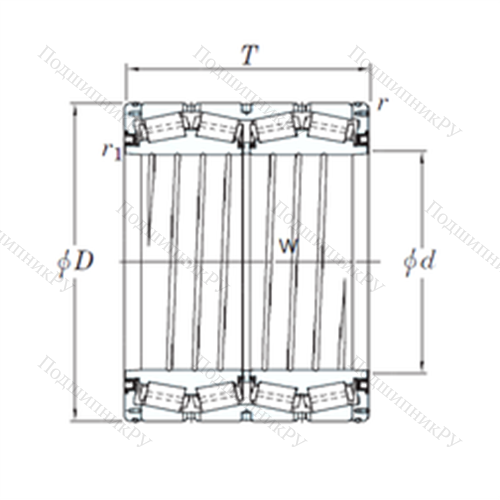 Подшипник роликовый радиально-упорный 4TRS559 у которого конструкционной особенностью являются ролики в форме конуса и разъемный корпус. Изделие также может быть укомплектовано наружным кольцом с упорным бортиком или большим углом, двухрядными или четырехрядными роликоподшипниками, утолщенной внешней шиной.