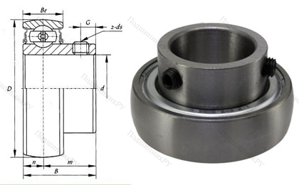Корпусный подшипник SB205 является разновидностью однорядного шарикоподшипника исполнения Y. Имеет выпуклую наружную обойму и уширенную внутреннюю. Фиксируется на валу с использованием двух установочных винтов с шестигранной головкой. Отверстия для установки последних разнесены по окружности внутренней обоймы.