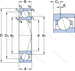 | Номинальная статическая грузоподъёмность | C0 | 11.2 | kN | |